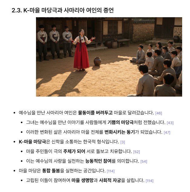 'K-예수 마을 교회'는 초고령 사회와 AI 시대의 도전에 맞서 예수와 바울의 사역을 한국적으로 통합한 모델이에요 . 교회의 가치는 건물의 크기가 아니라, 지역 사회에 얼마나 따뜻하고 촘촘한 '생명망'을 형성하는가로 증명됩니다 .